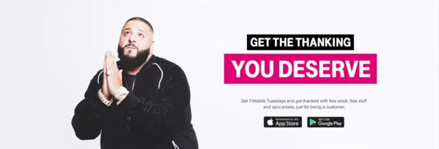 T-Mobile customers were encouraged to download the special mobile app to receive free stuff every Tuesday. Free stuff like VOD movies, Dairy Queen Frostys, even a medium size pizza from Dominos Pizza that was so popular they ran out of pizza that Tuesday!
